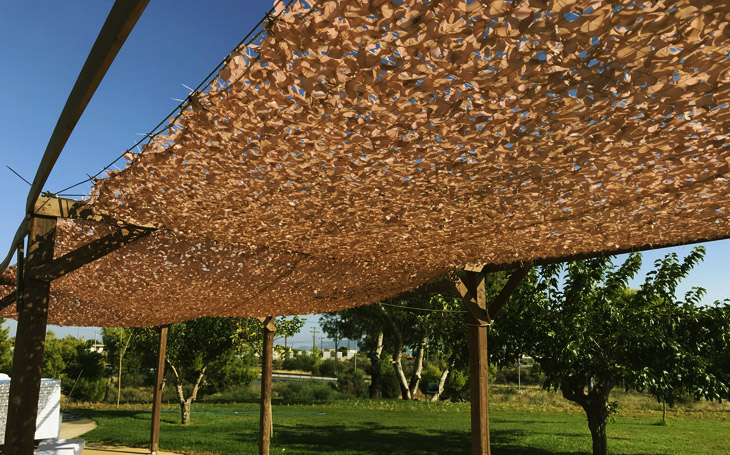 Μια ιδιαίτερη λύση σκίαση που επιτρέπει συγχρόνως το αερισμός του χώρου δίνοντας μια πιο εξωτική αίσθηση.